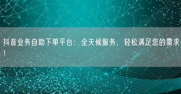 随着互联网的快速发展,人们对于各种服务的需求也日益增长。为了满足广大用户的需求,抖音业务自助下单平台应运而生,全天候服务,轻松满足您的需求!