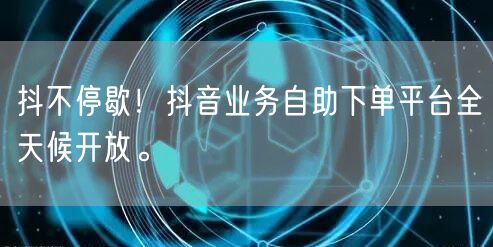 总之,抖不停歇!抖音业务自助下单平台全天候开放,为广大用户带来了全新的服务体验。它将用户的需求和体验放在首位,通过不断创新和提高服务质量,让用户在享受抖音带来的乐趣的同时,也能轻松实现业务订单的快速处理。
