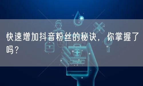 要想在抖音上快速增加粉丝,需要关注内容质量、积极参与互动、利用热门话题和趋势、多渠道推广以及定期更新与分析优化。掌握这些秘诀,你就能在抖音平台上轻松扩大影响力,吸引更多粉丝的关注。希望本文的分享对你有所帮助,祝你在抖音平台上取得更大的成功!