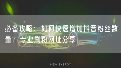 以上是一些必备攻略和专业刷粉网址分享,希望能帮助你快速增加抖音粉丝数量。记住,制作高质量的内容和互动社交是最重要的,同时也要注意选择正规的刷粉工具。希望你在抖音上获得更多的关注和成功!