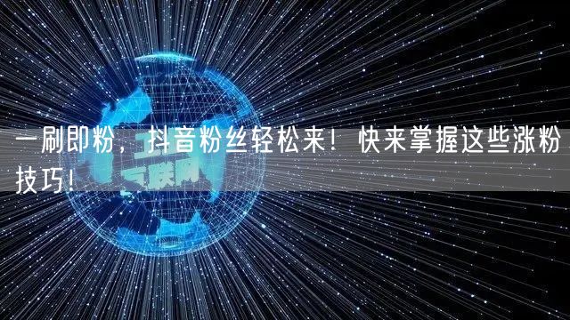 掌握以上涨粉技巧,轻松获取更多抖音粉丝!一刷即粉,快速成为抖音红人。在抖音这个充满机遇的平台,让我们一起努力,共同成长!