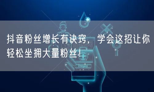 抖音作为当下最热门的社交媒体平台之一,拥有庞大的用户群体和巨大的流量红利。如何在抖音上吸引更多粉丝,扩大自己的影响力,成为众多用户关注的焦点。本文将为你揭示抖音粉丝增长的诀窍,助你轻松坐拥大量粉丝!